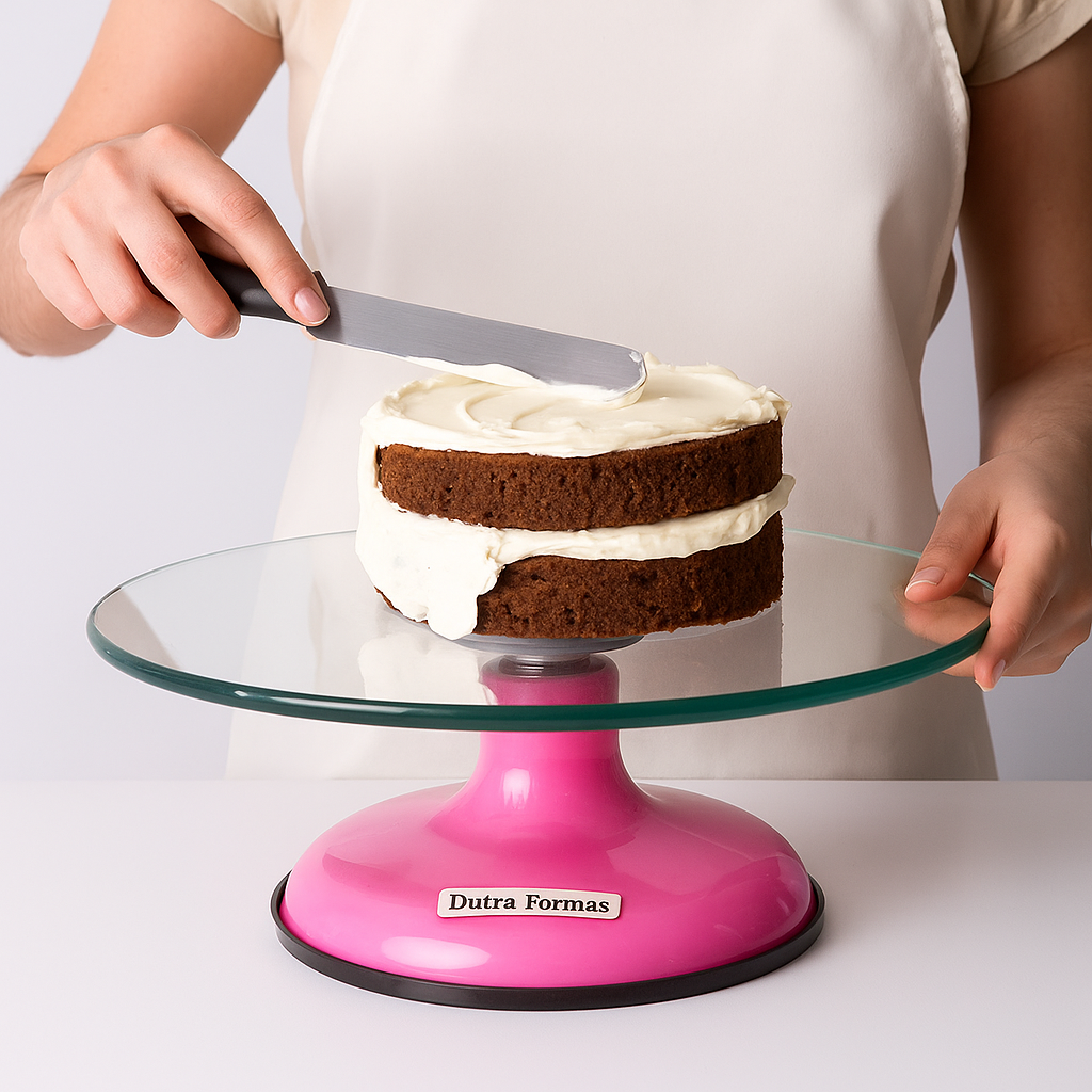Essa bailarina de vidro possui rolamento duplo, gira com facilidade e precisão. Sua superfície é antiderrapante trazendo mais estabilidade em sua utilização. A melhor do mercado, suporta até 100 Kg. O item indispensável para confeitaria, decore bolos, tortas de uma maneira rápida e prática.