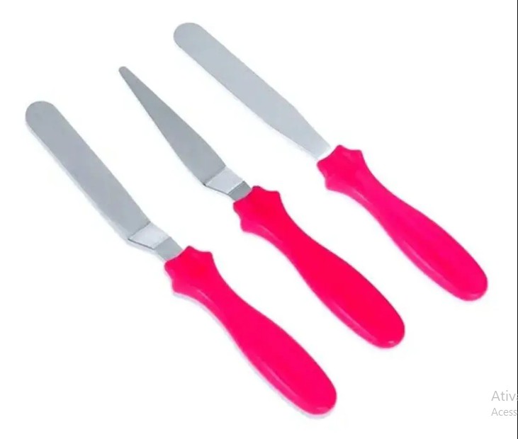 Kit 3 Espátulas Confeiteiro Bolo Torta Decorar Rechear Inox